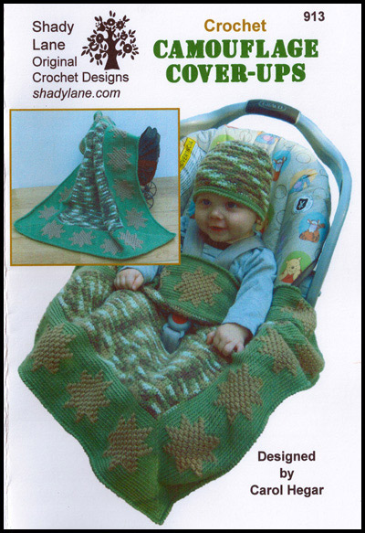 Sometimes you just want a smaller, quicker baby project than the usual afghan  These small blankets are just the ticket!  They are good "take along" projects and work up fast...great for a last minute shower gift.  They are like miniature afghans, but with two "holes" for a seat belt to fit through.  Or by omitting the seat belt holes, they should work fine for a preemie or newborn (they're around 24" square).