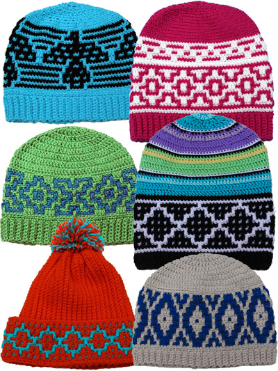 Dear Crochet Friend, I love designing Native American themed items using the dropped dc stitch. It lends itself to so many possibilities. Create these 6 Southwest Native American hats for your family using just single and double crochet sts. The design is formed by a dc in front loop of st 2 rnds below. Sc are worked in back lp of st. All color changes are made at the beginning of the rnd so you are only working with one color at a time.. Instructions include written patterns, plus there are optional graphs. Make them from worsted weight, DK or sport weight yarn. If you're not familiar with how easy the dropped dc stitch is to do, visit our website home page for a video how-to tutorial with step by step instructions. Order your pattern today for only $8.95 and get started right away! Sincerely, For the instant download pattern, click here. For a printed pattern booklet mailed to you, click here. |